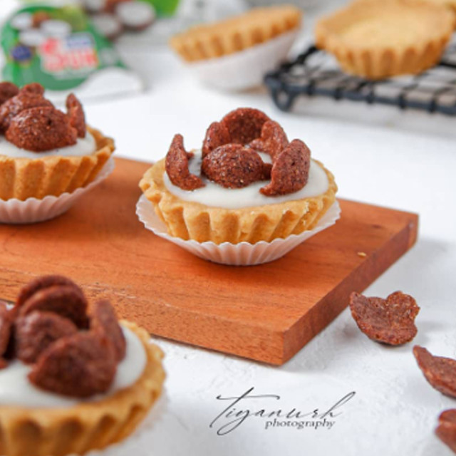 4. Isi pie dgn vla lalu beri topping alpukat diatasnya.