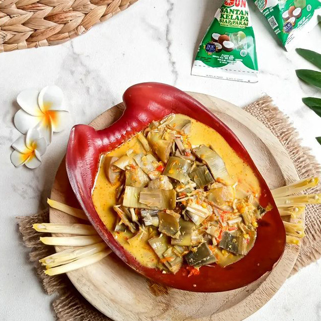 400g jantung pisang batu iris sesuai selera direbus 5 menit tiriskan.