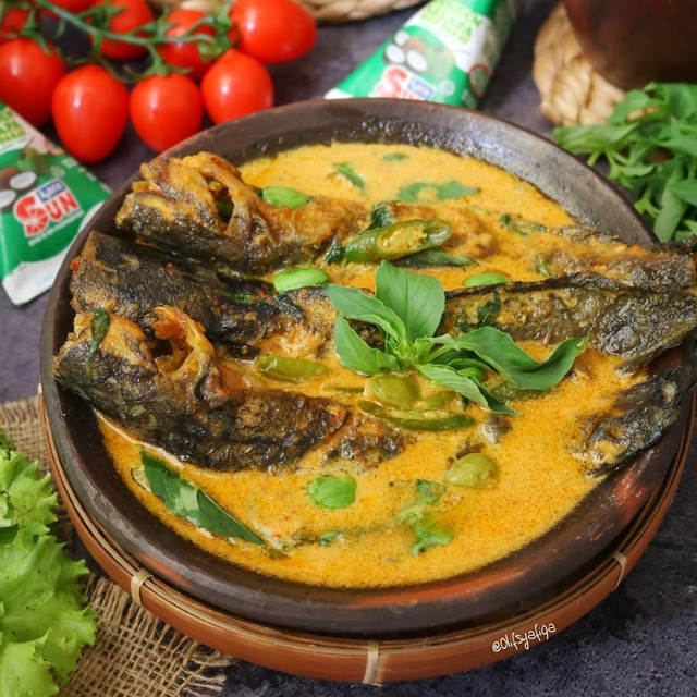 4. Masukkan lele,cabai hijau dan daun kemangi, masak hingga kuah agak menyusut dan mengental