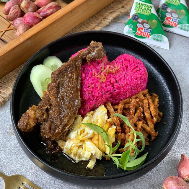 Nasi Uduk Buah Naga dengan Semur Daging Santan