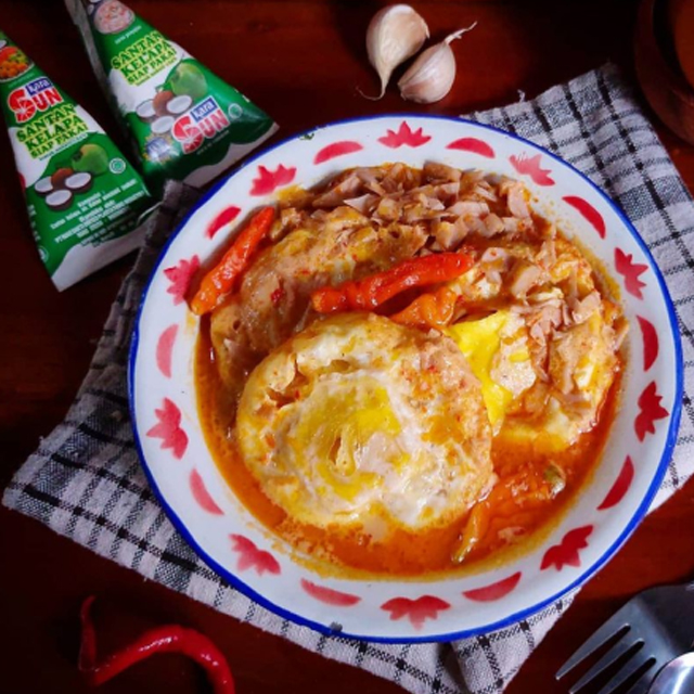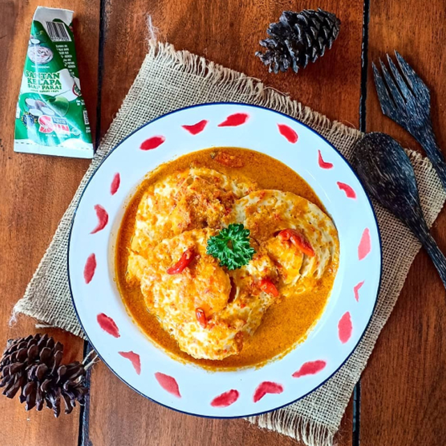 Telur ceplok kuah santan pedas