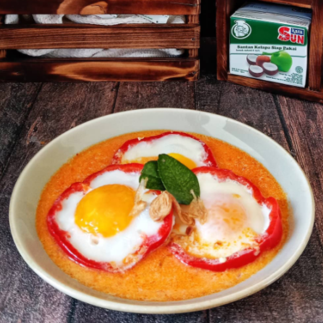 Telur Ceplok Paprika Kuah Santan Pedas